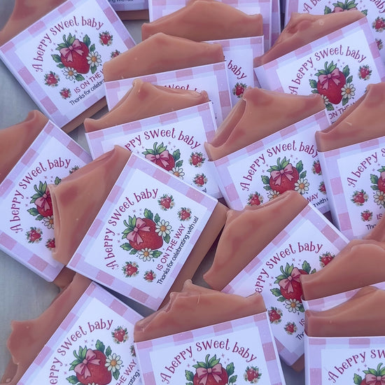 Celebrate your bundle of joy with these adorable Berry Sweet baby shower favors! Each handcrafted vegan soap bar features charming berry designs that add a fresh, fruity touch to your celebration. Your guests will love these eco-friendly keepsakes that are as sweet as they are sustainable.